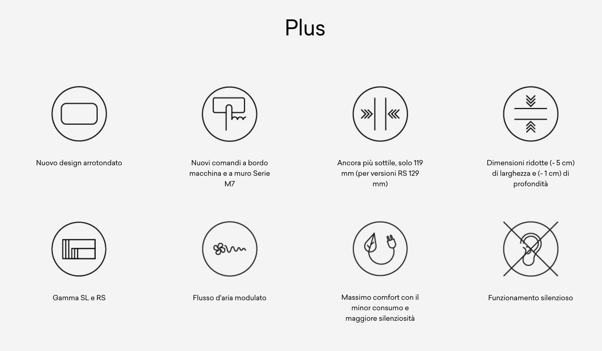 RS, aggiunge alle prestazioni dei modelli SL, un pannello frontale riscaldato per avere ulteriore comfort e, in funzionamento notturno, il massimo silenzio. Installazione solo verticale.